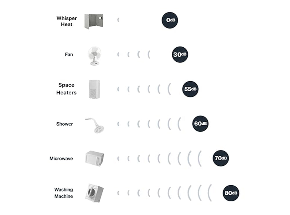 At just 0dB, Whisper Heat is the most silent heater ever. We call it Meditation Quiet.