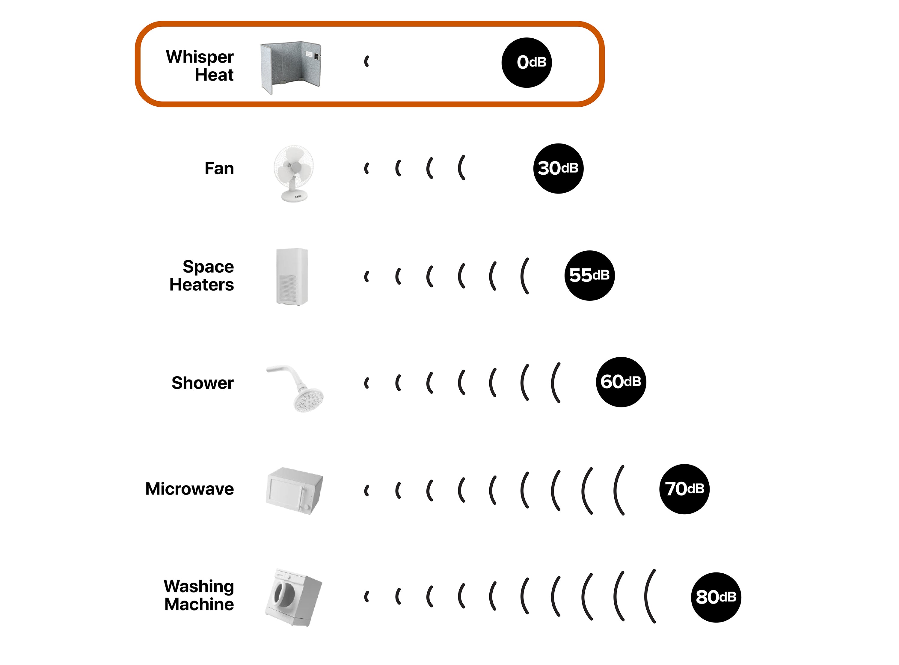 At just 0dB, Whisper Heat is the most silent heater ever. We call it Meditation Quiet.