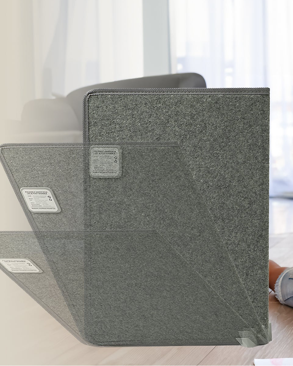 Both units operate whisper-quiet, ideal for focused work or study. The slim, foldable under-desk panel and low-profile mat fit seamlessly in any workspace.